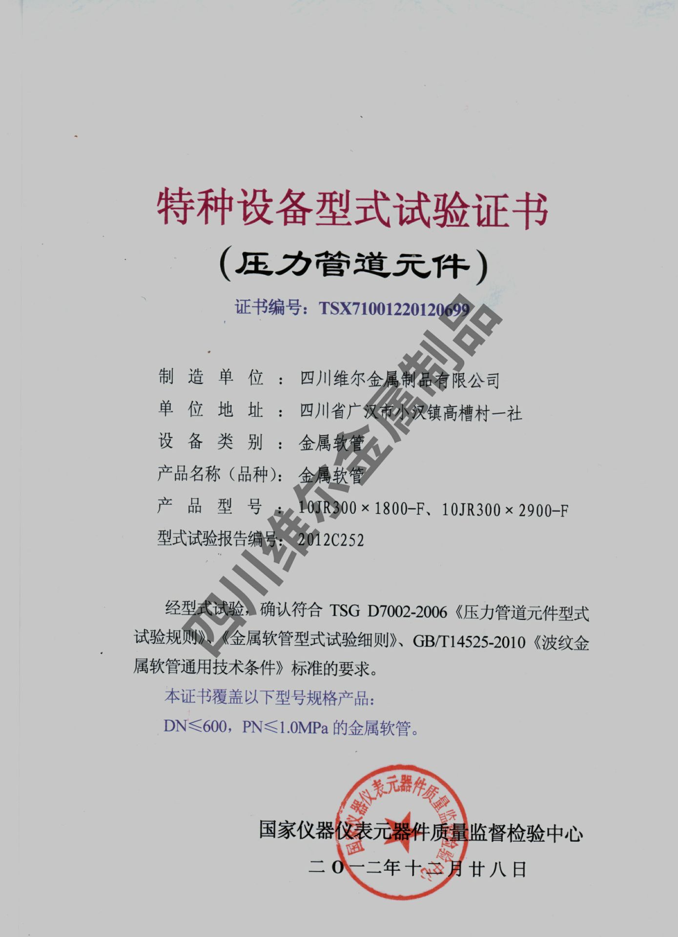 特种设备型式试验证书